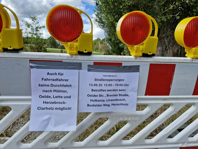 Die Straße war, wegen der Rallye Ostwestfalen, gesperrt.